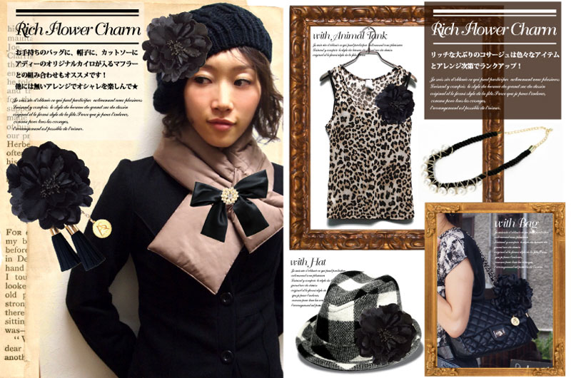 タッセル付ビッグコサージュ マットブラックCHA-1-C