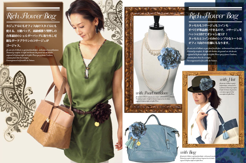 ビッグフラワーコサージュ付合皮ショルダートートバッグ キャメルBG-6