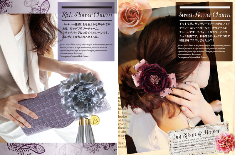 タッセル付ビッグコサージュ シャイニーグレー