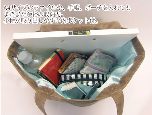 A4サイズの書類、ファイルが折らずに入るから、通勤にも◎