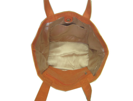 裏地にはシャンパンカラーのサテン風生地を使用、床置きOKの足付きで、オシャレ+実用性にもこだわったバッグです。