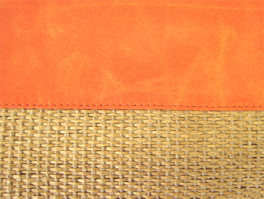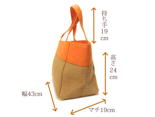 TOP > オリジナルトート&チャームセット>フラワー&エンブレム付ストローショルダートートバッグ・オレンジ×ベージュBG-05