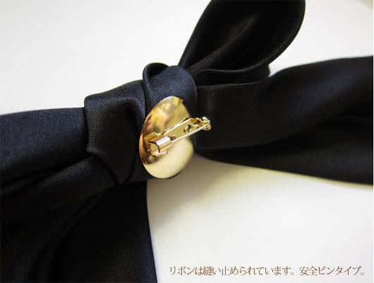とろみのある生地の落ち感が、女子度高めのアイテム。 安全ピンで留めるタイプのリボンブローチです。リボンは縫いとめてあるので、つけている間にほどけたり、型崩れする心配はナシ。