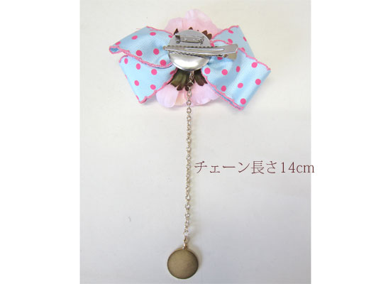 サイズ: 花・リボン部分 横約13cm×縦約9cm コイン付チェーン 約14cm