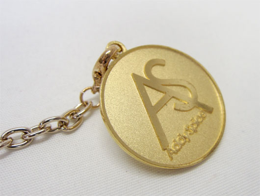 ころんとした丸みのあるお花がかわいいコサージュと、アディースパイスオリジナルコインのチャームセットです。