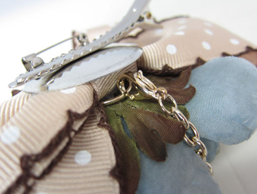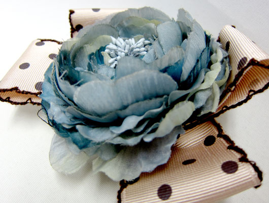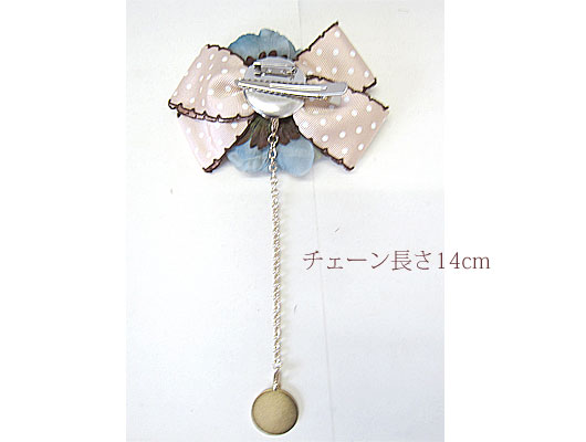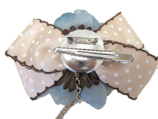 TOP > チャーム>ドットリボン付コサージュ>ブルー花×ベージュドットリボンCHA-03-F