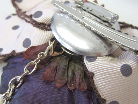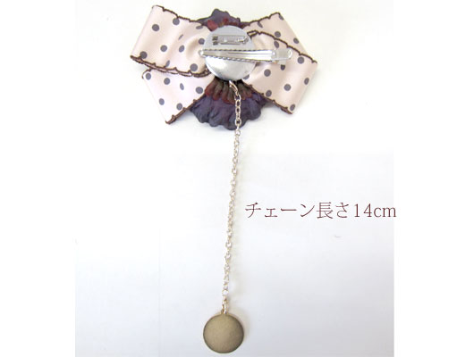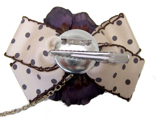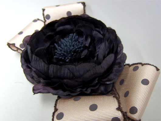 TOP > チャーム>ドットリボン付コサージュ>ダークパープル花×ベージュドットリボンCHA-03-G