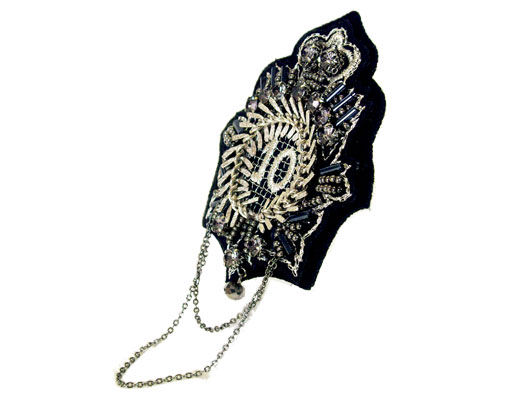 商品名: ラインストーン付ラメ刺繍エンブレムブローチEM-06BK