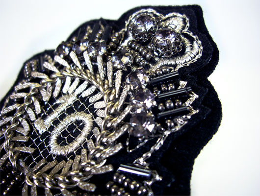さらにビーズとラメ糸刺繍で、色みを抑えつつゴージャスな仕上がり。