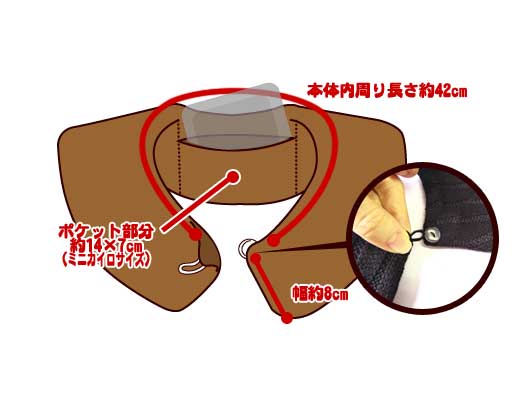 内側にミニサイズのカイロが入る、カイロポケット付きつけ襟です。